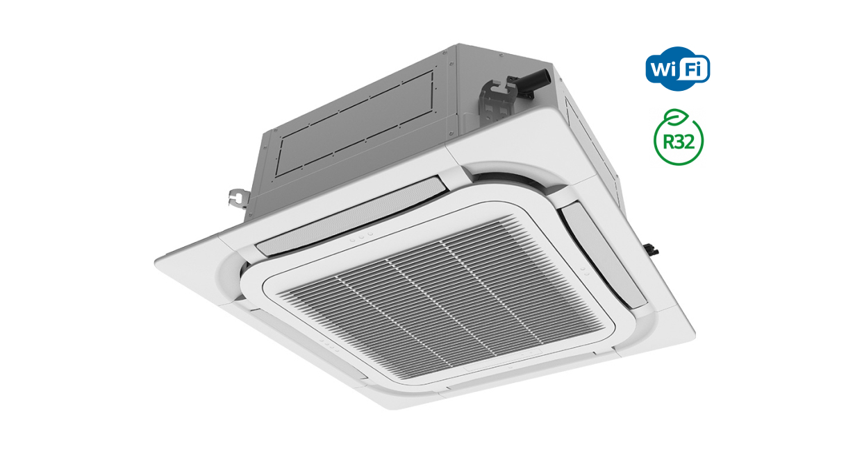 Внутренние блоки кассетного типа 600х600 одинаково хорошо подходят для офисов и других коммерческих помещений. Компактный габаритный размер для монтажа в подвесной потолок от 265 мм.