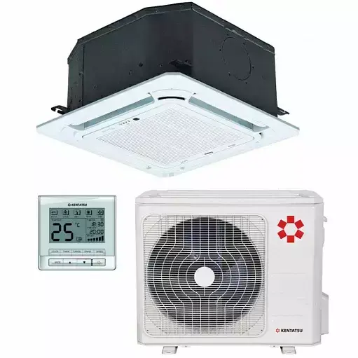 Кассетная сплит-система Kentatsu KSVA70HZAN1 / KSUNA70HZAN1 создает наиболее подходящие условия по температуре для посетителей помещений коммерческого назначения или офисов. Декоративная панель имеет четыре заслонки и раздачу струй воздуха по углам.