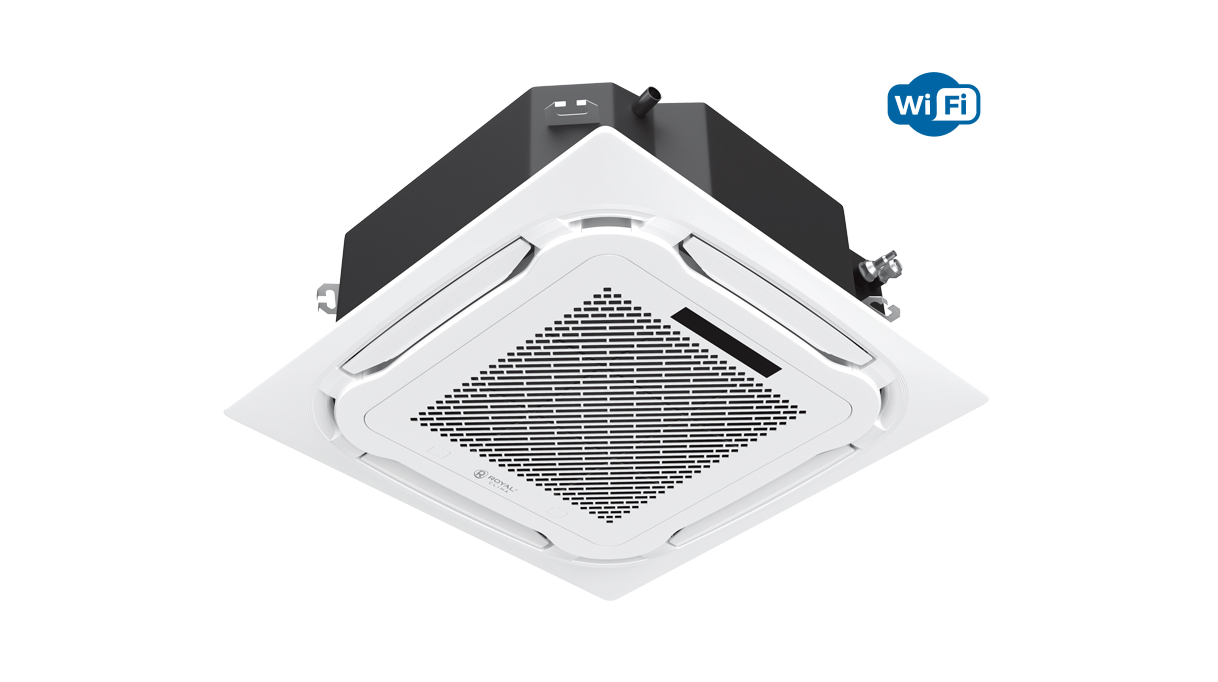 Кассетные полупромышленные блоки имеют функцию кругового (на 360°) распределения воздушного потока — для этого по углам декоративной панели и в самом блоке сделаны дополнительные отверстия, через которых воздух распределяется в дополнение к отверстиям, закрытым жалюзи. Данная функция позволяет более равномерно распределять охлажденный воздух по помещению, повышая комфорт пользователей.