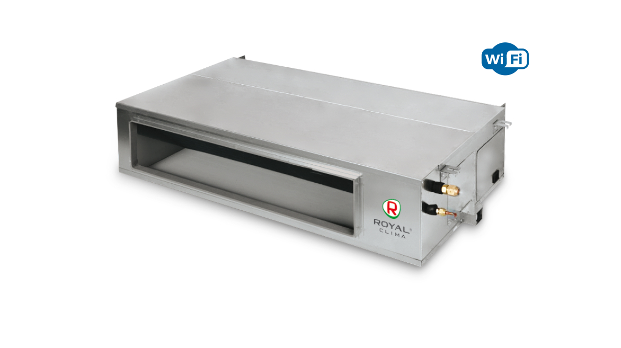 Канальные кондиционеры ROYAL Clima имеют универсальное подключение воздуховодов. Переставляя заглушку, можно добиться разного направления забора воздуха: снизу (например, если забор воздуха осуществляется напрямую из охлаждаемого помещения), или сзади (например, если необходимо подключение дополнительного воздуховода на заборе воздуха)