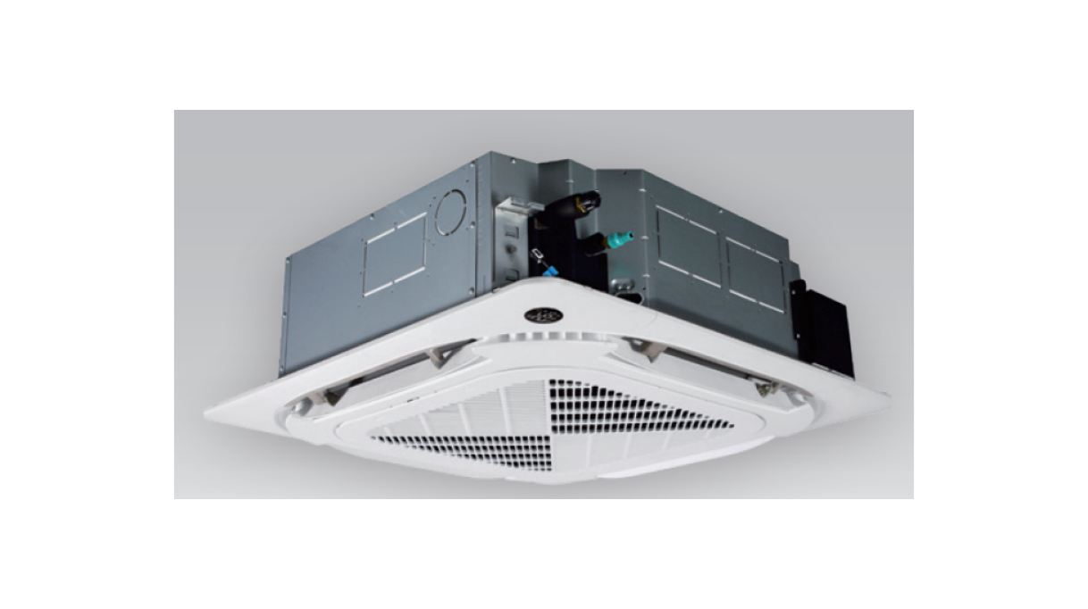 Кассетные полупромышленные блоки имеют функцию кругового (на 360°) распределения воздушного потока — для этого по углам декоративной панели и в самом блоке сделаны дополнительные отверстия, через которых воздух распределяется в дополнение к отверстиям, закрытым жалюзи. Данная функция позволяет более равномерно распределять охлажденный воздух по помещению, повышая комфорт пользователей.