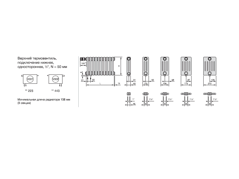 Область применения: Отопление ; Эффективен для помещ. площадью до: 15 м2; Макс. тепловая мощность: 1.44 кВт; Максимальное рабочее давление: 10 бар; Предельное давление: 25 бар; Теплоотдача при Δt 70: 1438.8 Вт; Теплоотдача при Δt 60: 1166 Вт; Теплоотдача при Δt 50: 924 Вт; Вариант размещения: Горизонтальное ; Вид установки (крепления): Настенная ; Макс. температура теплоносителя: 110 °С; Межосевое расстояние: 500 мм; Давление опрессовки: 15 бар; Объем воды в радиаторе: 13.2 л; Расчетное рабочее давление в системе водоснабжения: 10 бар; Резьба присоединения радиатора: 1/2 ; Тип подключения: Нижнее ; Вес товара (нетто): 19.4 кг; Высота товара: 558 мм; Глубина товара: 62 мм; Ширина товара: 1010 мм; Набор крепежных элементов в комплекте: Да ; Гарантийный документ: Гарантийный талон ;